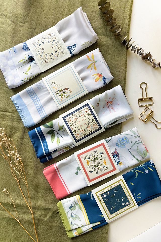 Para los amantes de las pañoletas, una increíble colección que une el amor por la naturaleza y el estilo en sutiles combinaciones de colores y modelos.